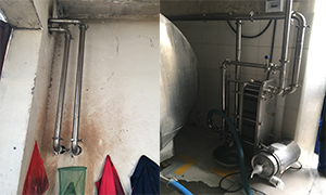工艺:之前挤奶直接进入制冷罐,降温速度达不到要求。采用旧制冷罐制取冰水,增加换热板换一台,用冰水给挤奶机过来的牛奶进行预冷降温。效果很好,牛奶进罐温度10℃。